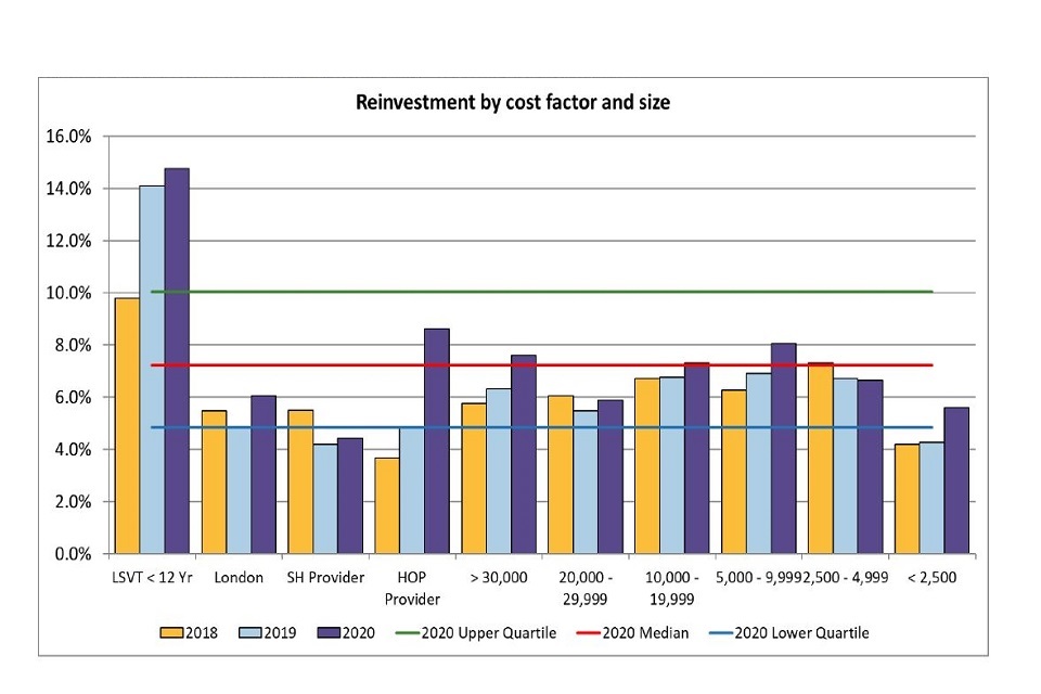5.10 The weighted average delivery of new social homes as a percentage of total stock owned has increased from 1.5% in 2018 to 1.8% in 2020. The median reinvestment has also increased from 6.0% to 7.2% over the same period.