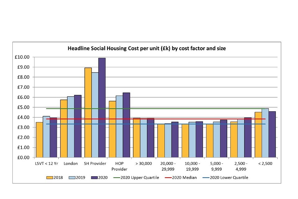 the average Headline Social Housing cost continues to increase across all quartiles – the median cost per unit has increased by 4% to £3,830 per unit;