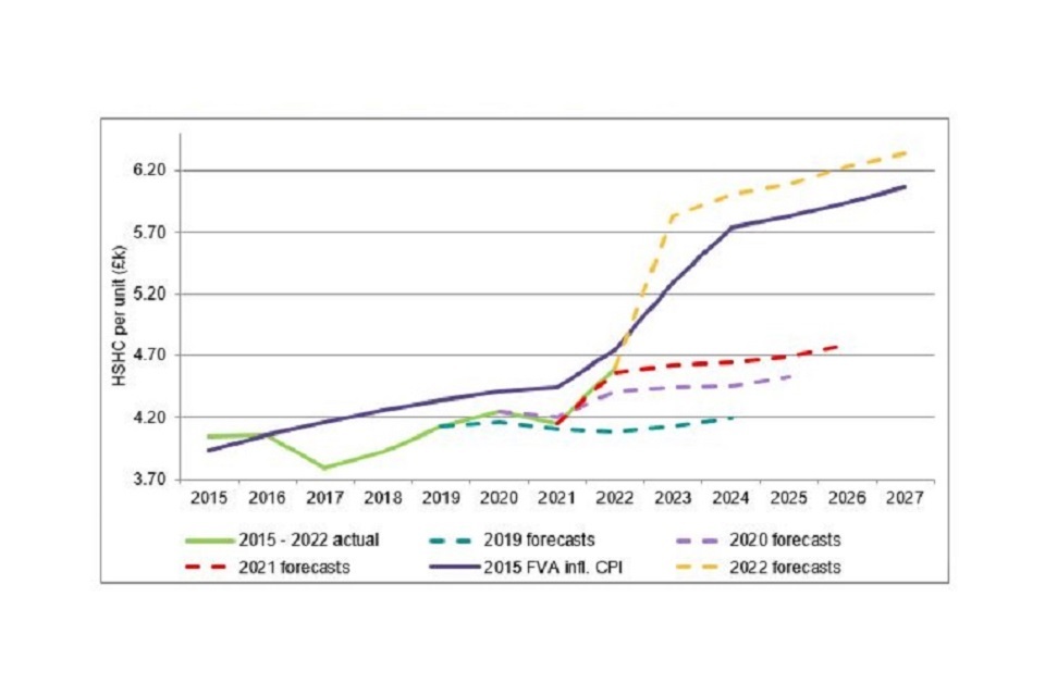 The median headline costs increased by 11% to £4,150 per unit. This had an impact on the median operating margin (social housing lettings) which fell from 26.3% in 2021 to 23.3% in 2022.The increase in headline costs was mainly attributable to a record level of expenditure on maintenance and major repairs which includes costs relating to building safety spend, catch-up works delayed from the COVID-19 pandemic and costs related to energy efficiency.