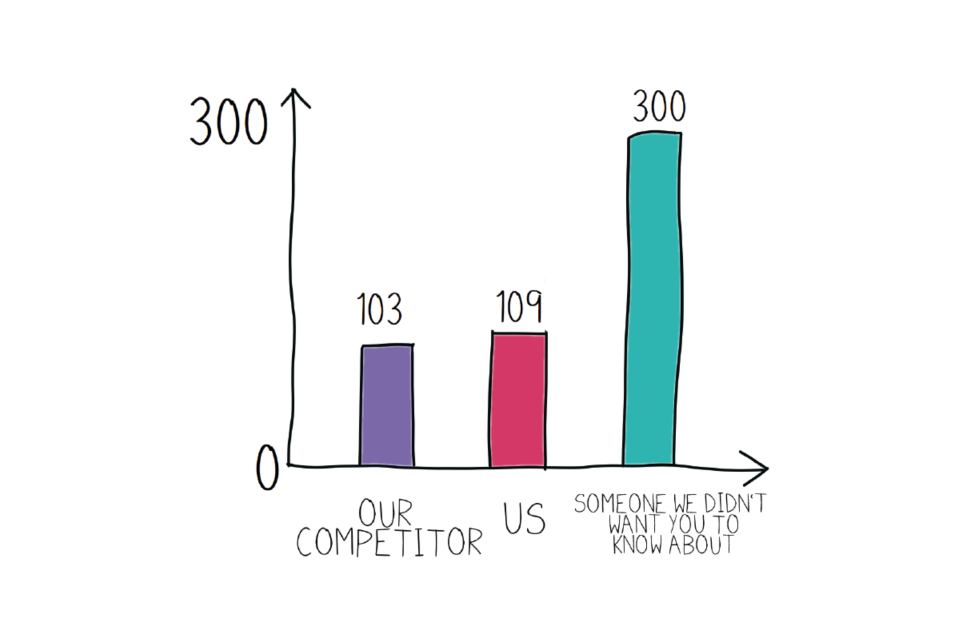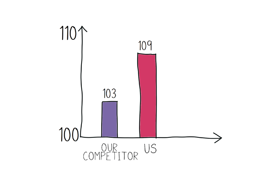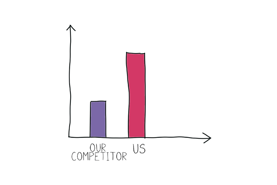 An unlabelled bar chart showing how much bigger our bar is than our competitor’s.