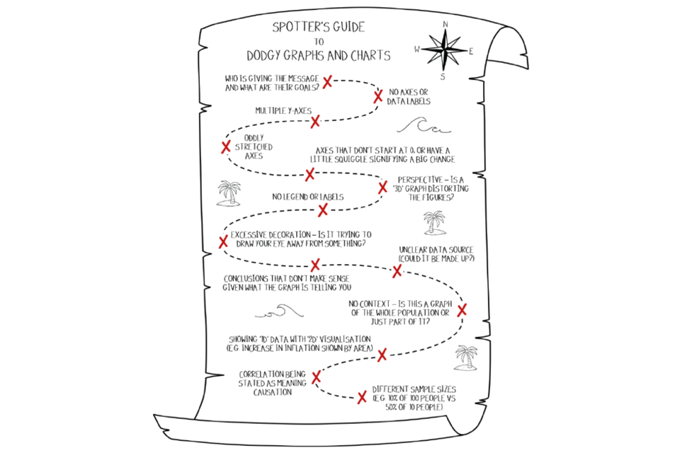 Misleading people with graphs is not a new problem; mostly this is done unconsciously or just because the visualisation is poorly described, or designed. Sometimes, it is deliberate. In fact, it is so easy to mislead people with statistics and charts that Darrell Huff wrote a book called How to Lie with Statistics in 1954 (that’s nearly 70 years ago at time of writing). So why might people mislead and how may it manifest itself? Read on!