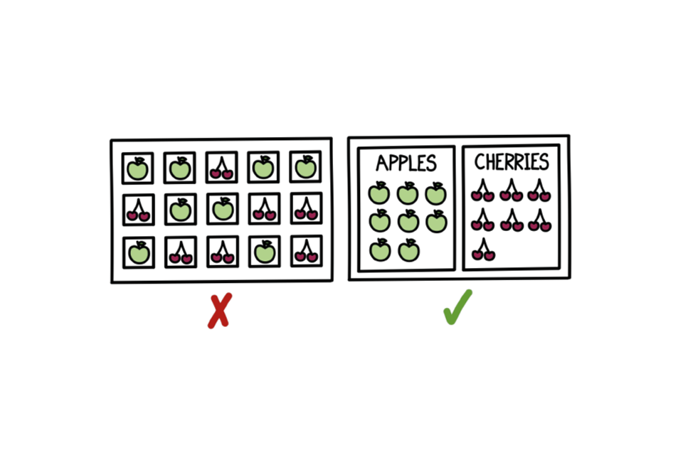 We tend to group objects when they are close to each other, for example grouping biscuits by brand.