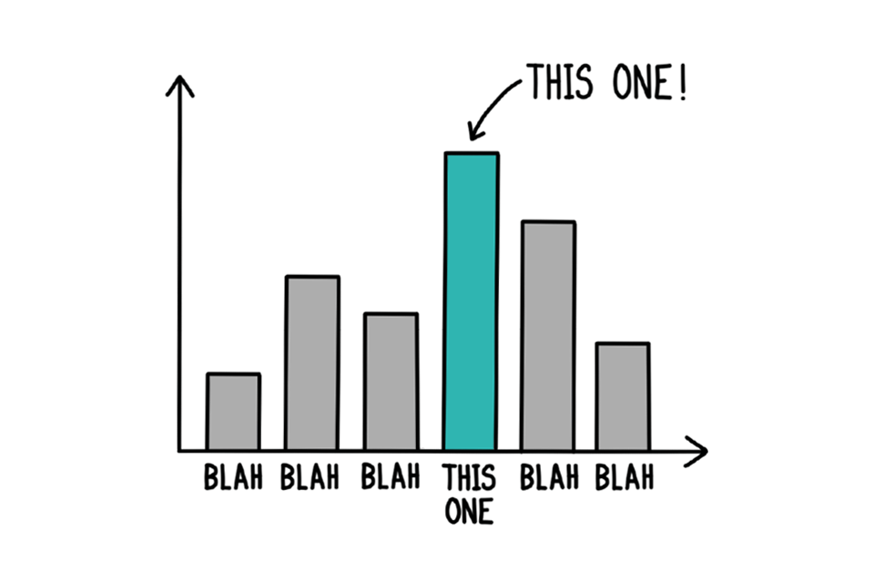 Focal Point: Those objects that are different from the surrounding elements are more likely to stand out. This is particularly useful when you want a visualisation to land a key takeaway message.