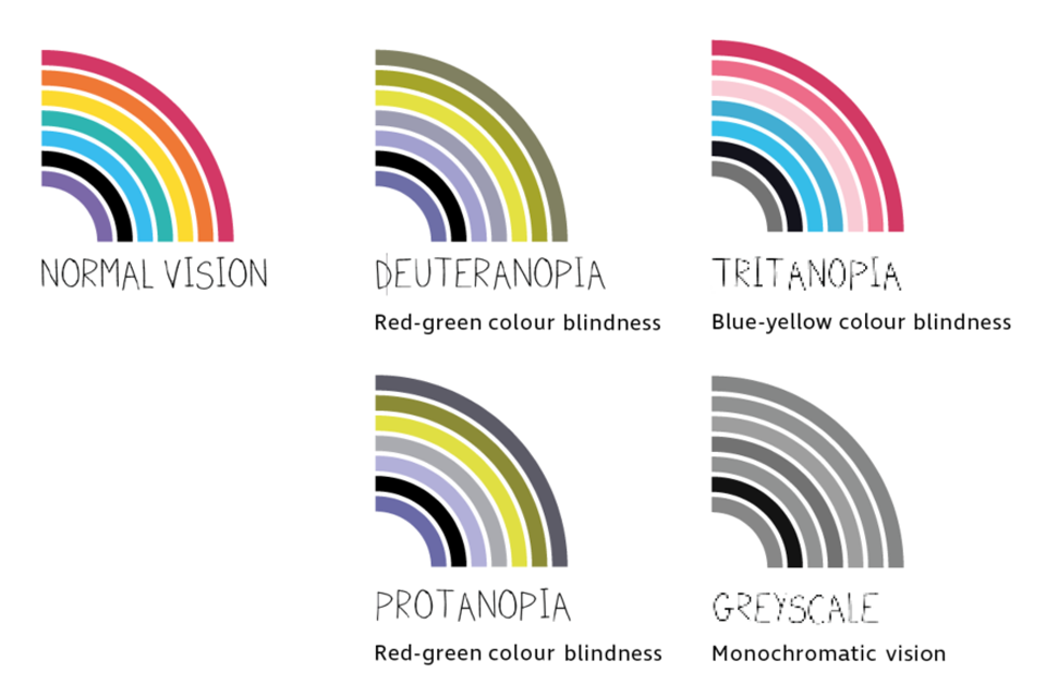 In order to make data visualisation for everyone, we should try to make visualisations accessible and inclusive for as many people as possible. Accessibility covers a wide spectrum, and means we need to think carefully about the elements that make up a visualisation. It is very hard (or near on impossible) to cater to all, however there are some things we can do to improve the experience as much as we can. Below are a few things to think about when making visualisations as accessible as possible.
