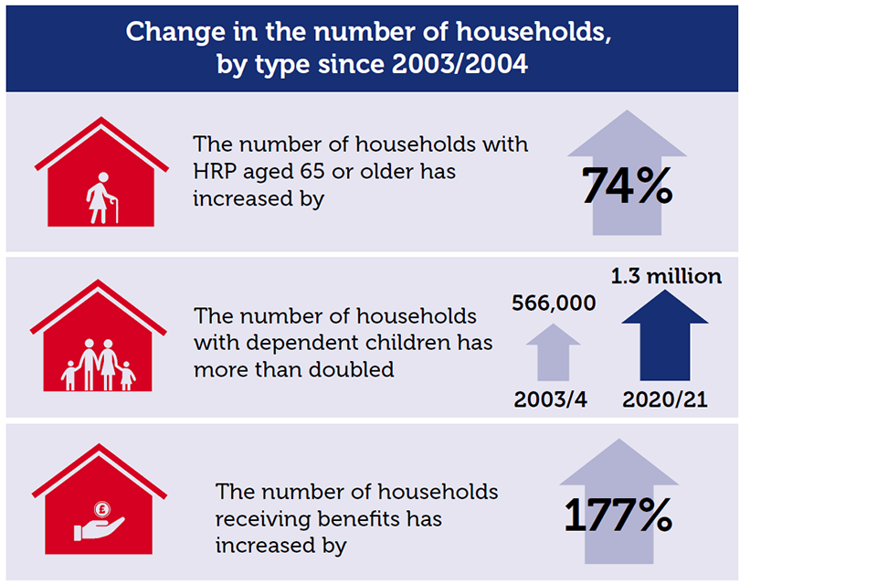 In 2020 to 2021, there were an estimated 1.1 million households in England who received Housing Benefit to help with the payment of their rent, representing 26% of all households in the rented sector.