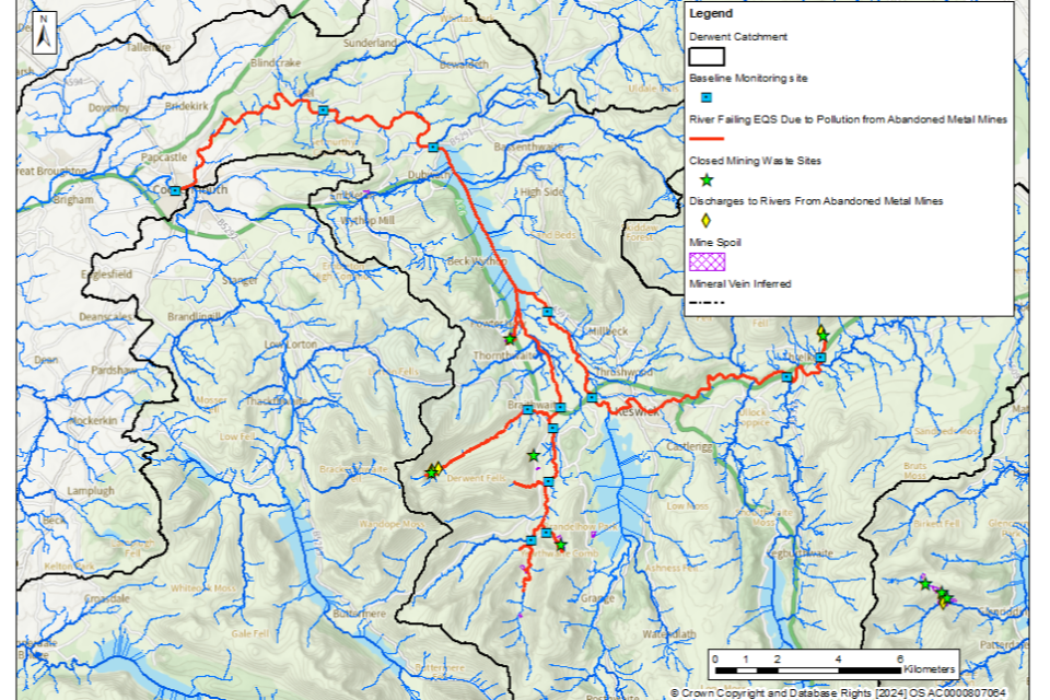 Figure 2. The baseline length of rivers polluted by target substances from abandoned metal mines in the Derwent North West management catchment is 58km