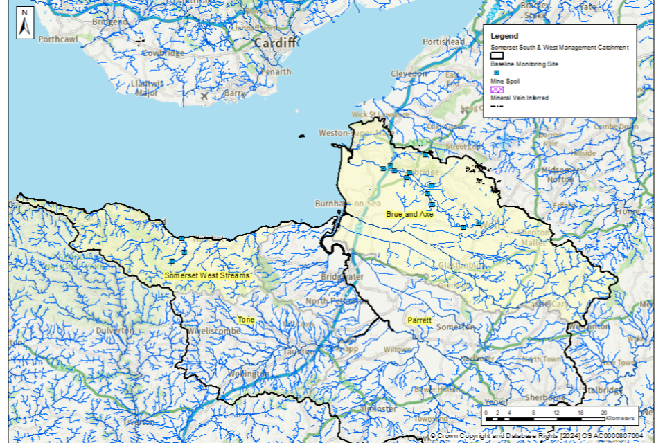Water quality data collected between 1 January 2022 and 31 March 2024 have been used to determine and validate the baseline length of rivers and estuaries considered polluted in 2022. The length of rivers polluted by abandoned metal mines fluctuates in response to natural variation in rainfall and river flows. However, this length will not materially change unless remediation measures like mine water treatment schemes or diffuse interventions are installed to decrease inputs of metals. Therefore, data collected after 31 December 2022 are considered to be representative of rivers, provided no new remediation measures had been constructed since 2022. No new remediation measures have been constructed in the Somerset South and West management catchment since 2022.