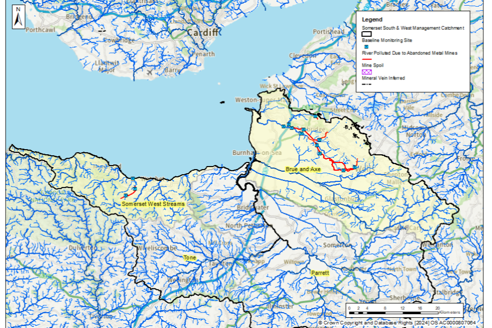 Somerset South and West management catchment: baseline length of rivers and estuaries polluted by abandoned metal mines