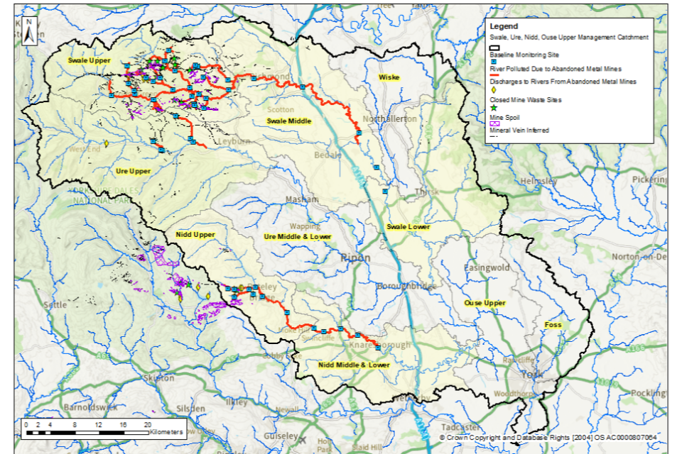 As we can see from Figure 1, most of the historical mining activities in the SUNO management catchment were concentrated in the Swale Upper, Ure Upper and Nidd Upper operational catchments, however, pollution from these mines extends into the downstream operational catchments.