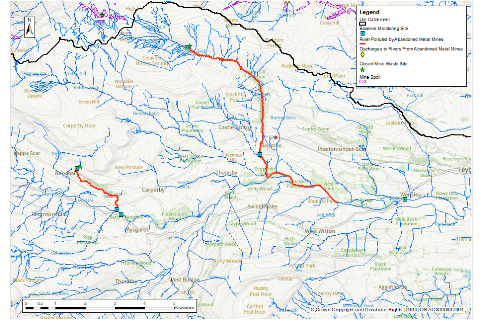 Figure 4. The baseline length of rivers polluted by target substances from abandoned metal mines in the Ure Upper operational catchment is 14km