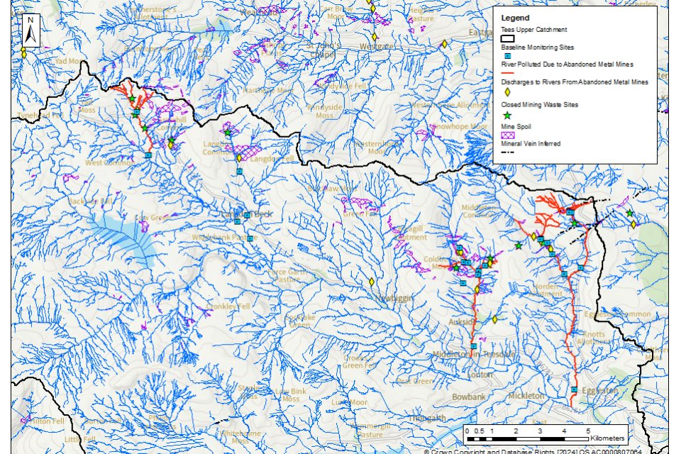 Tees management catchment: baseline length of rivers and estuaries polluted by abandoned metal mines