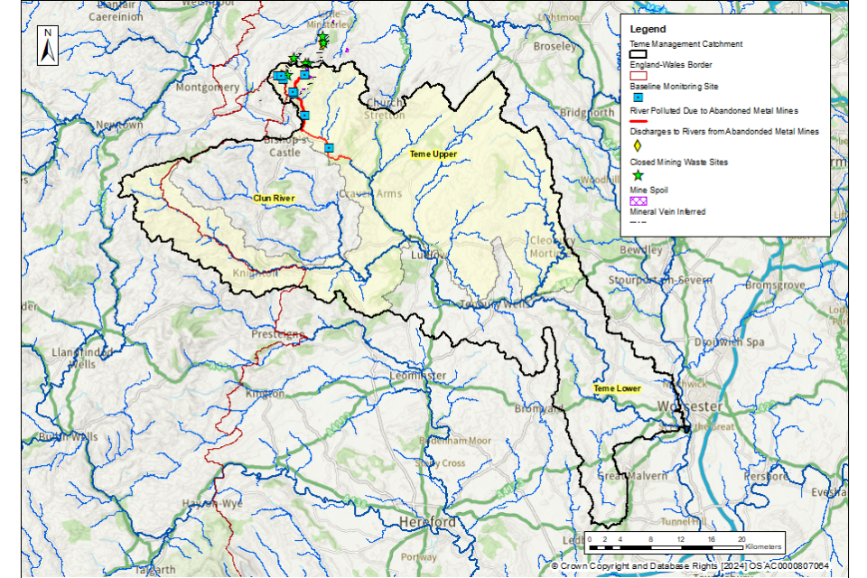 Figure 2. The baseline length of rivers polluted by target substances from abandoned metal mines in the Teme management catchment is 37km