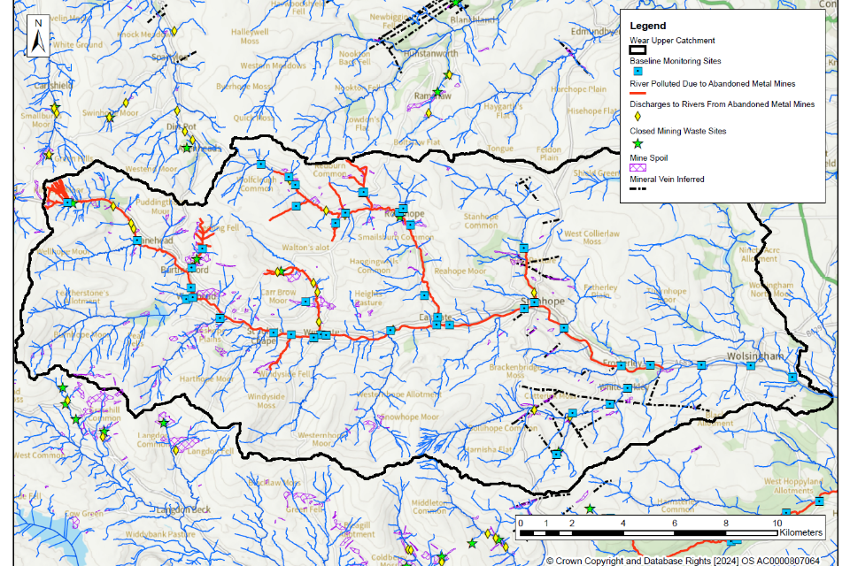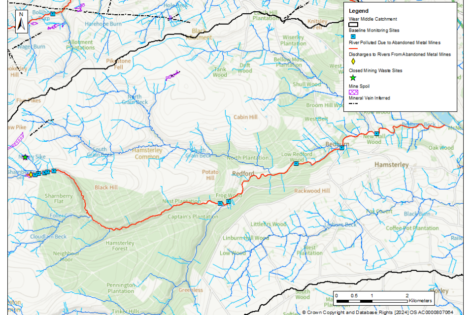 Our detailed monitoring across a range of flow conditions between January 2022 and March 2024 shows that in the Wear management catchment, the baseline length of polluted rivers for the abandoned metal mines target is 86km.