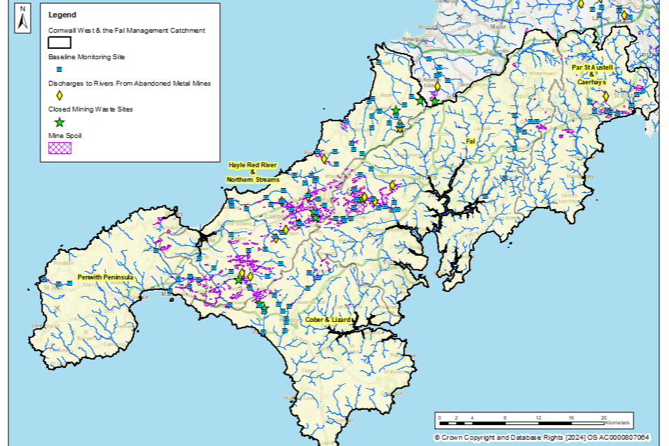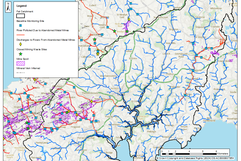 Water quality data collected between 1 January 2022 and 31 March 2024 have been used to determine and validate the baseline length of rivers and estuaries considered polluted in 2022. The length of rivers polluted by abandoned metal mines fluctuates in response to natural variation in rainfall and river flows. However, this length will not materially change unless remediation measures like mine water treatment schemes or diffuse interventions are installed to decrease inputs of metals. Therefore, data collected after 31 December 2022 are considered to be representative of rivers, provided no new remediation measures had been constructed since 2022. Where new remediation measures have been constructed in the West Cornwall and Fal management catchment since 2022, the baseline was determined only using water quality data collected before these measures were completed.