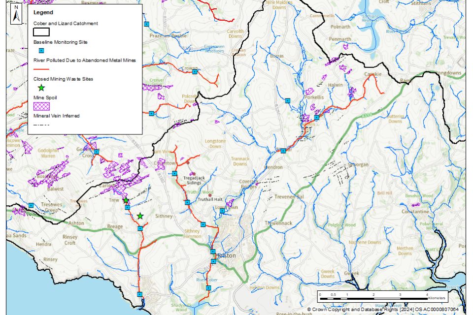 Figure 2. The baseline length of rivers polluted by target substances from abandoned metal mines in the West Cornwall and Fal management catchment is 264km