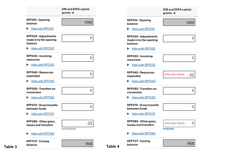 - change the data manually by deleting the automated figure and typing in your own. This will change the field-level tracking tag for those cells from ‘Automated’ to ‘Modified’