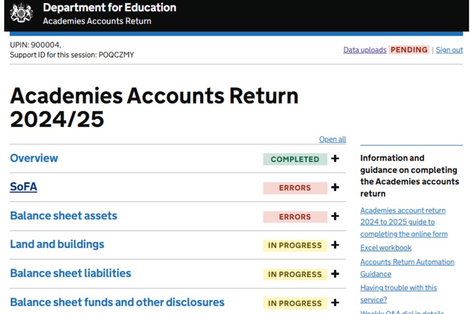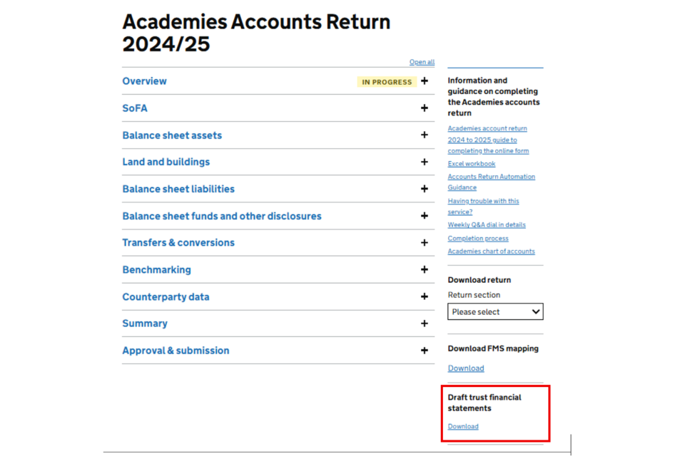 | Further information on completing the AR | Academies accounts return 2024 to 2025: guide to completing the online form, Further help and information. |