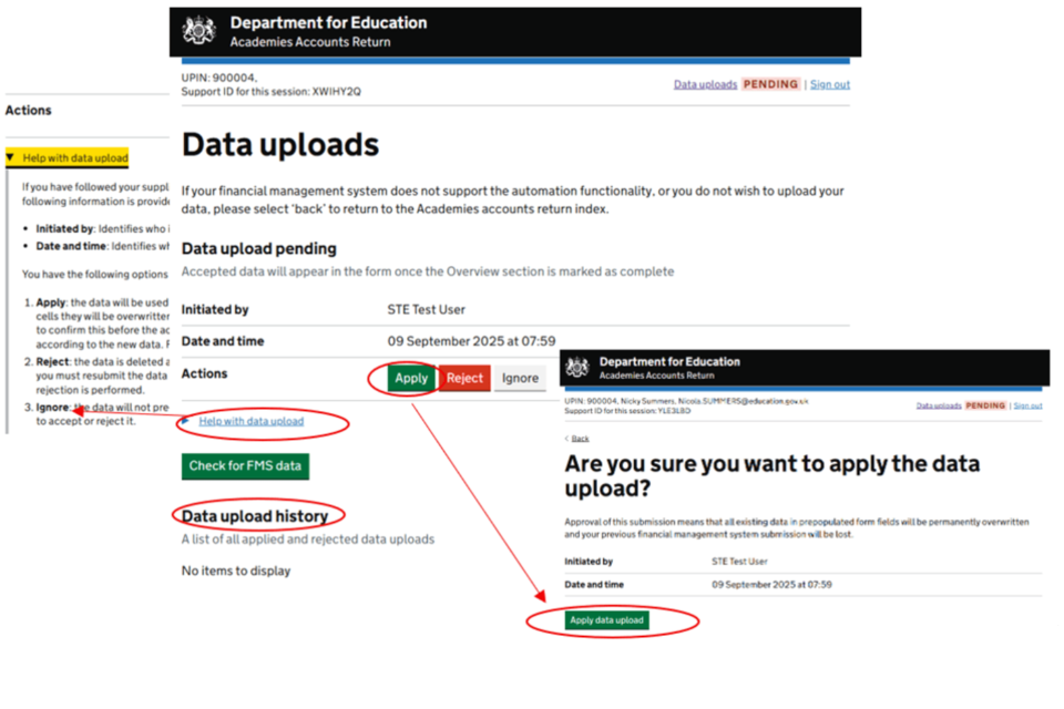 For more information, view the Detailed user guide for automating the academies AR and draft financial statements, section 3.6 – applying submitted data to your AR.