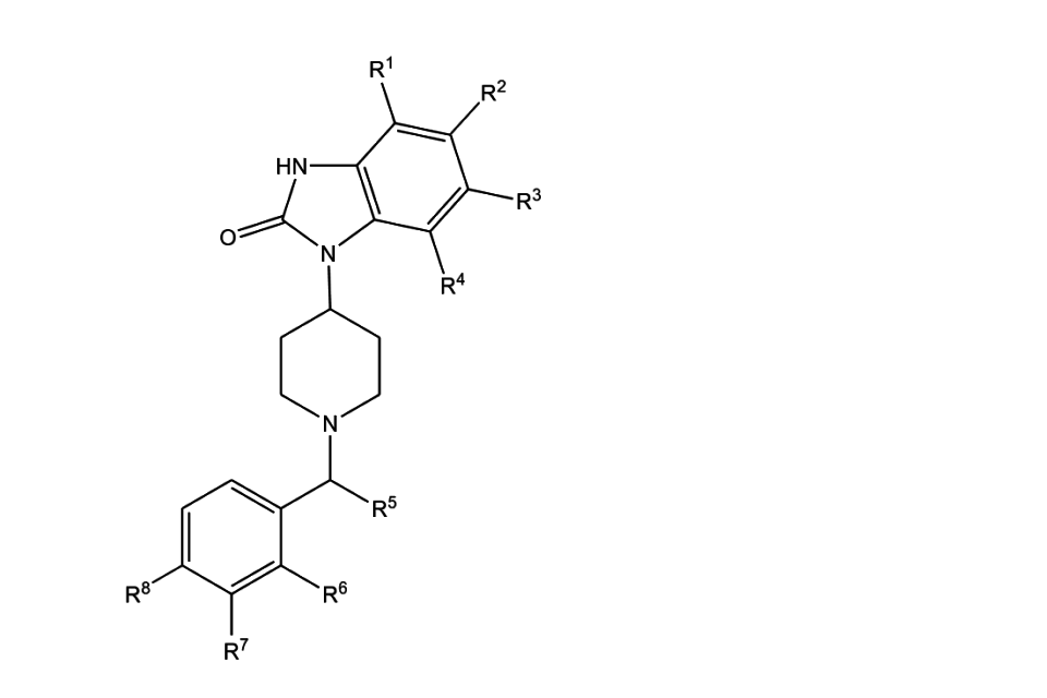 3.4. The general structure of piperidyl benzimidazolone opioids is shown in Annex D. They contain a benzimidazole-2-one ring system, substituted with a 4- piperidinyl group on one of the ring nitrogens, with a benzylic group attached to the piperidinyl nitrogen. They are chemically distinct from other opioid drug groups, although there are some structural similarities to fentanyl. However, the 4-piperidinyl benzimidazolone core is found in other medicines, including the antipsychotics benperidol and pimozide, and the dopamine antagonist domperidone, which is used to promote lactation and treat nausea and vomiting, and gastroparesis.