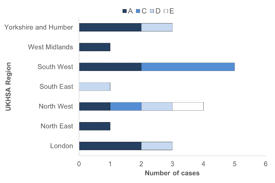 Figure 4. Genotypes of acute samples sent to VRD by UKHSA region