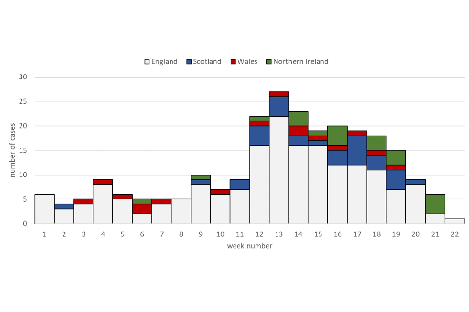 For the purposes of this summary, cases refer to confirmed (10 years old and under) and possible (11 to 15 year old) cases – see case definition in Technical Briefing 3. The public health agencies of the 4 nations continue to work with the NHS to classify reported case-patients who have incomplete laboratory information (referred to as ‘pending’).