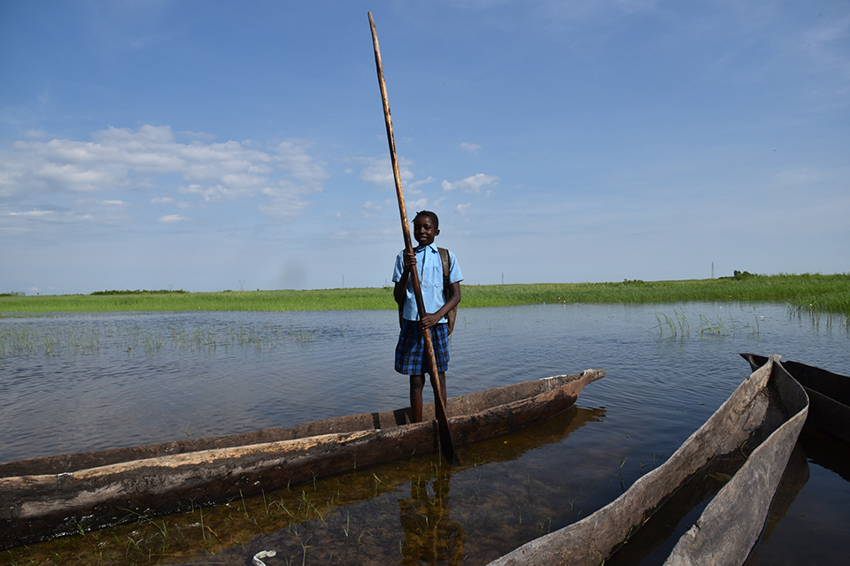 In Zambia, 12-year-old Sitali’s village is situated on the floodplains of the Zambezi River. During the rainy season, she had to take a canoe to the main road to travel a long distance to the nearby school which meant she generally had to stay at home. Credit: Save the Children.