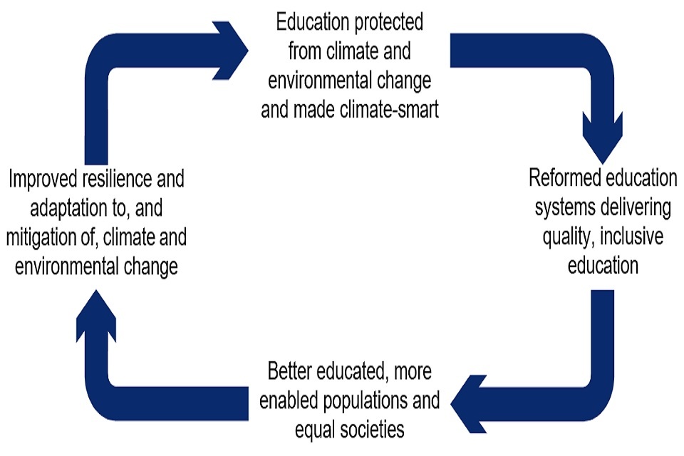 Figure shows the relationship between education protected from climate change; reformed education systems; better educated populations and improved resilience and adaptation to climate change