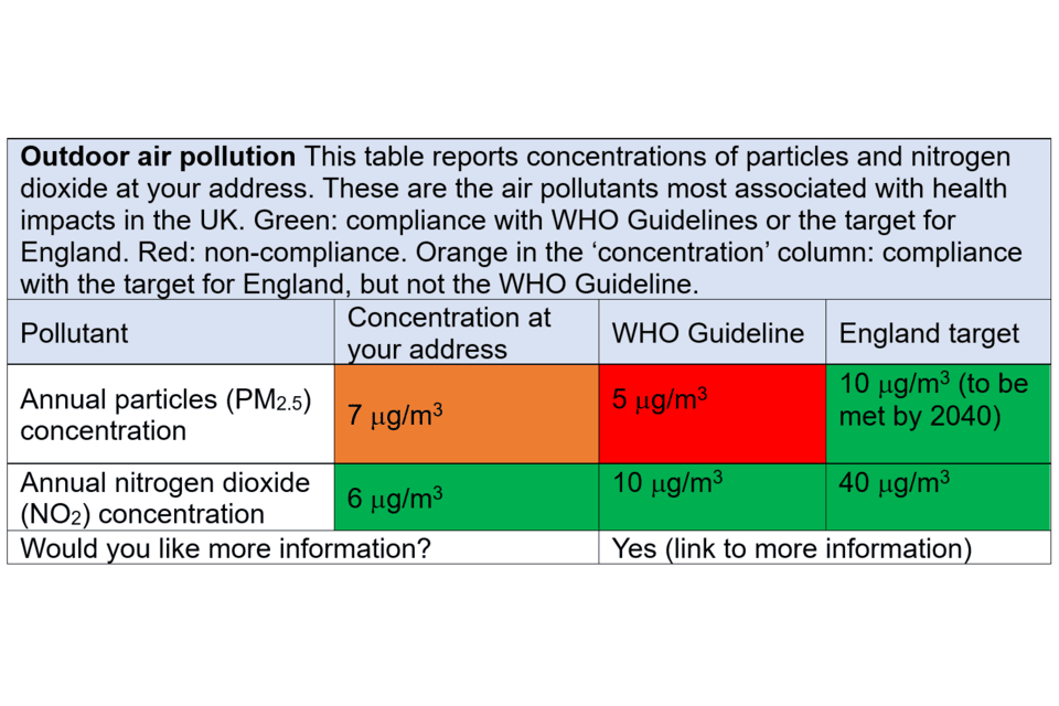 There has been information on long term outdoor concentrations at home addresses in the public domain, for example via the previously available ‘address pollution’ website (discussed below) which provided an index based on annual average concentrations. We discuss this approach below, and also consider whether there are better ways to communicate information on long-term air pollution risk.