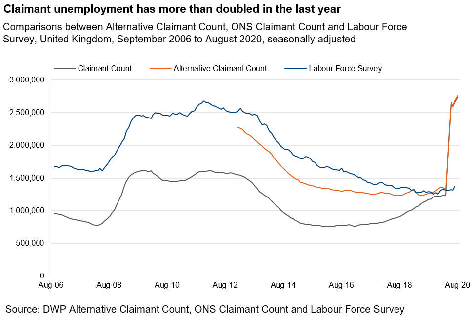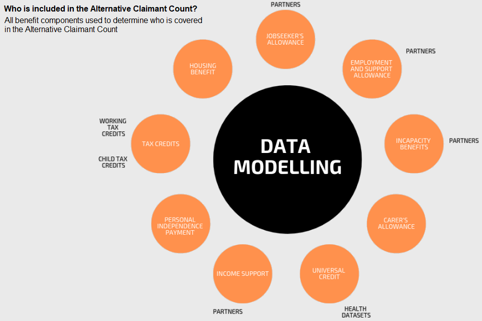 To address this, the new Alternative Claimant Count statistics measure the number of people claiming unemployment benefits by modelling what the count would have been if Universal Credit had been in place since 2013 with the broader span of people this covers.