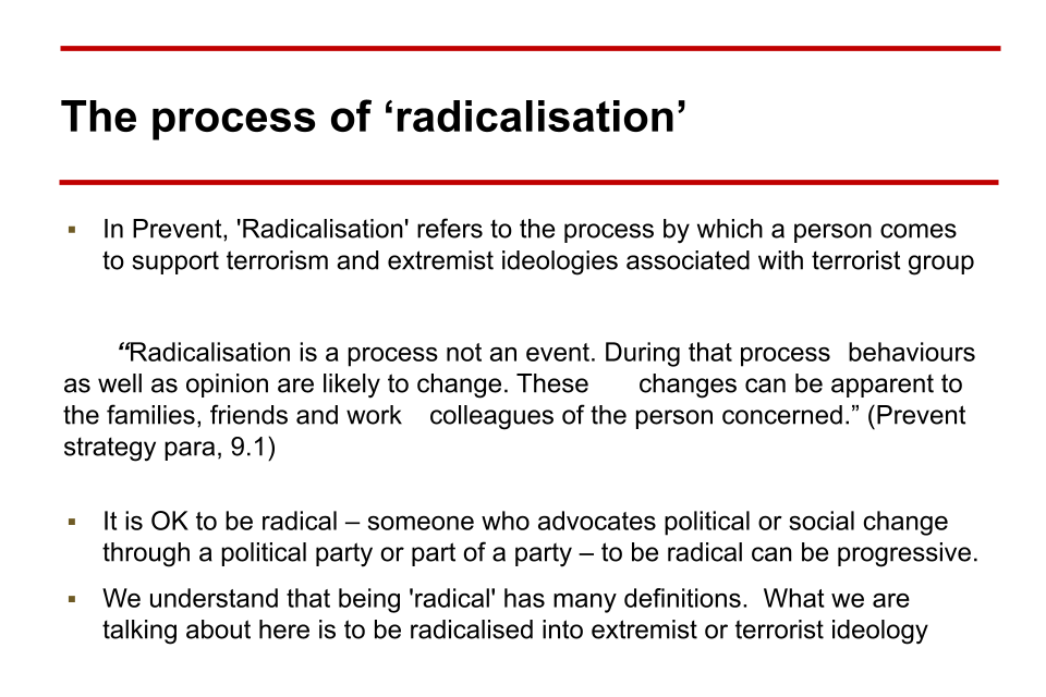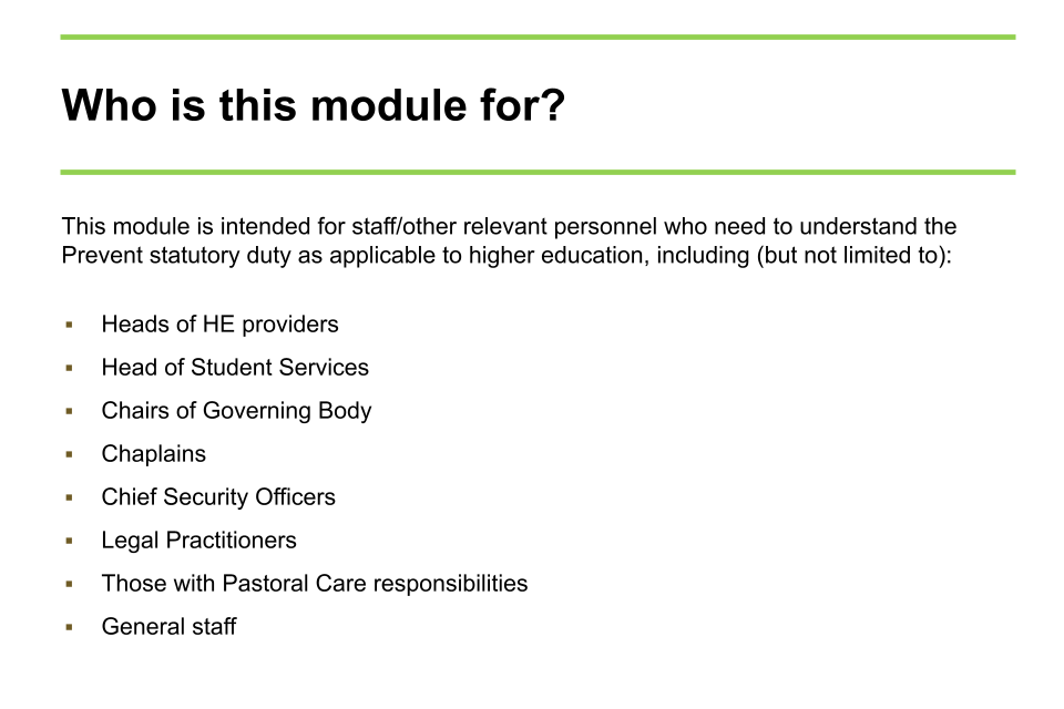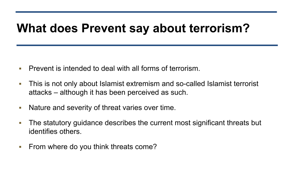 These training materials are not intended to be a replacement of the Home Office’s Prevent awareness training.