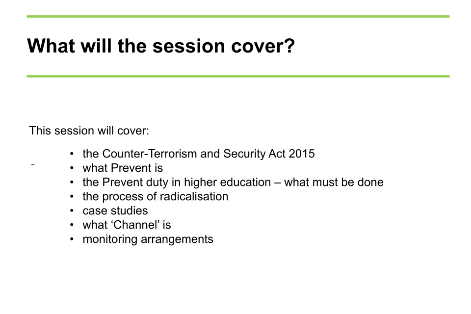 An introduction to the Prevent Duty in higher education (HE): notes for trainers