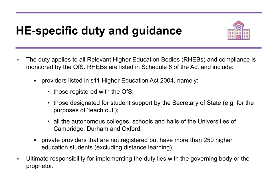 The government has published general guidance for all authorities and separate guidance for each specified authority – there is separate guidance for HE institutions in Scotland.