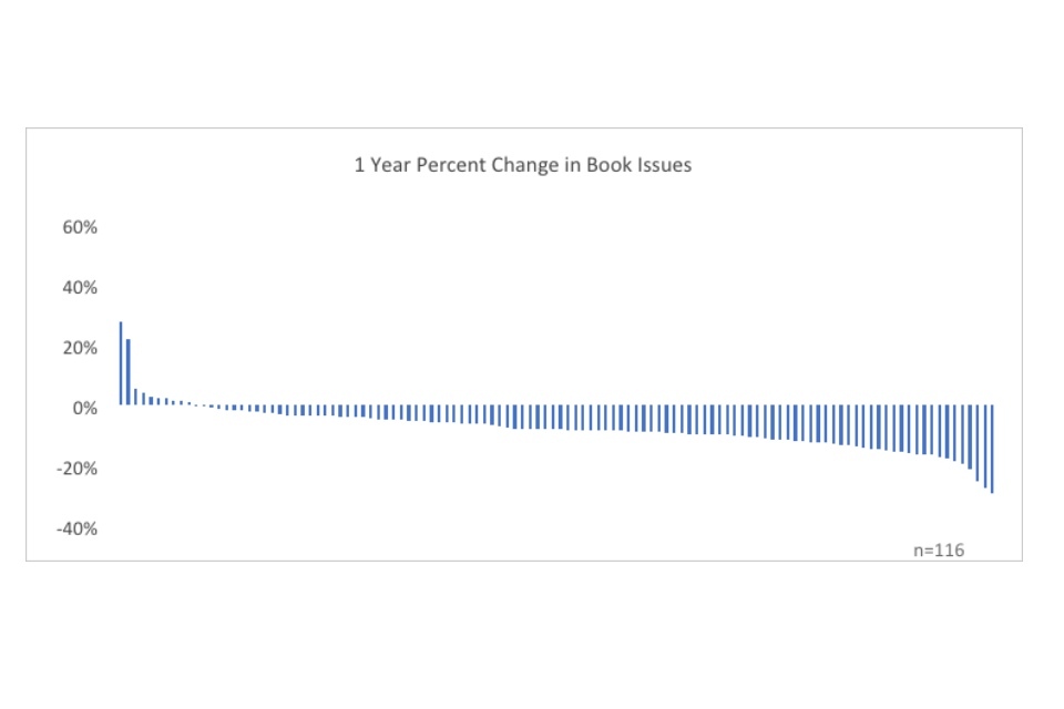 The emphasis on book issues over all issues reflects that the statutory requirement on public libraries in England to “lend books and other printed material free of charge.” ↩