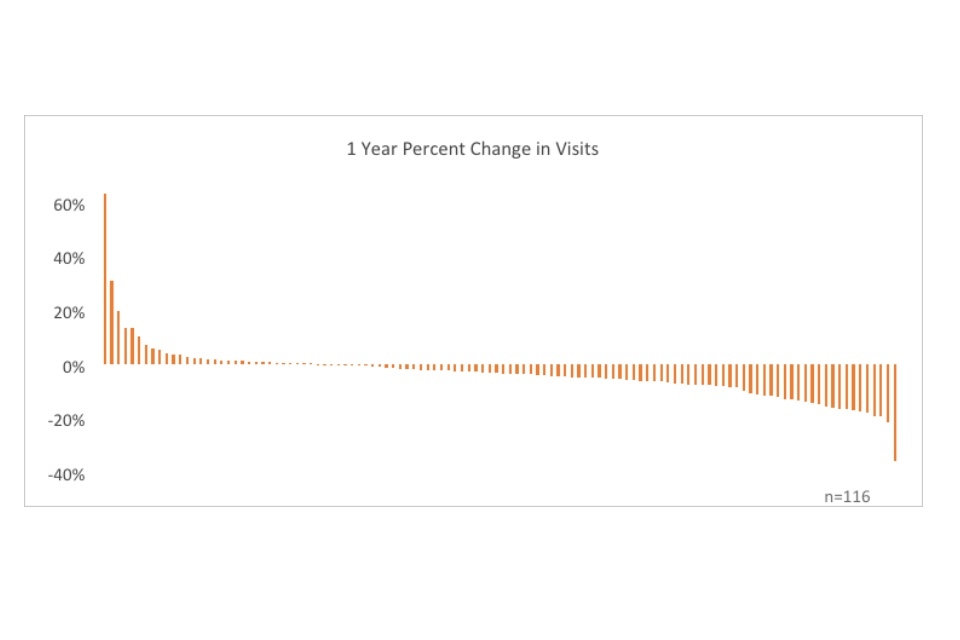 Bar chart showing percent change of issue and visits