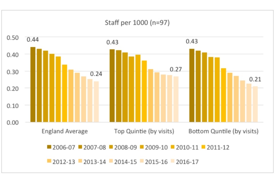 Libraries remain an important facet of life in England. In the financial year 2016 to 2017, libraries in England received more than 205 million physical visits, more than visits to Premier League football games, A&E services, and the cinema combined. Libraries are also omnipresent: there are more library service points in England than Costa Coffee restaurants or Boots pharmacies[footnote 1].