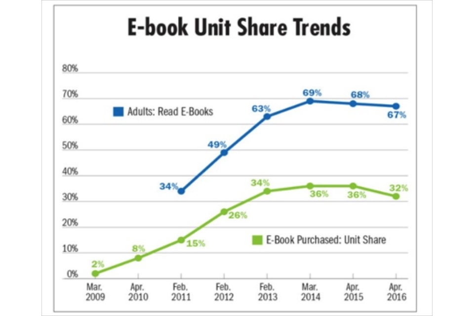 Finally, although this report focuses on the issue of books (unless otherwise noted) [footnote 3], it is important to see that when all issues are taking into account (including audio, visual, electronic, and other), the decline in issues is also tempered. For instance, the increasing issues of e-books (graphed below) offsets part of the decline in book issues.