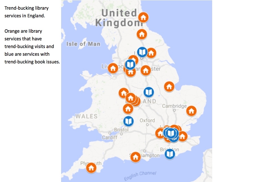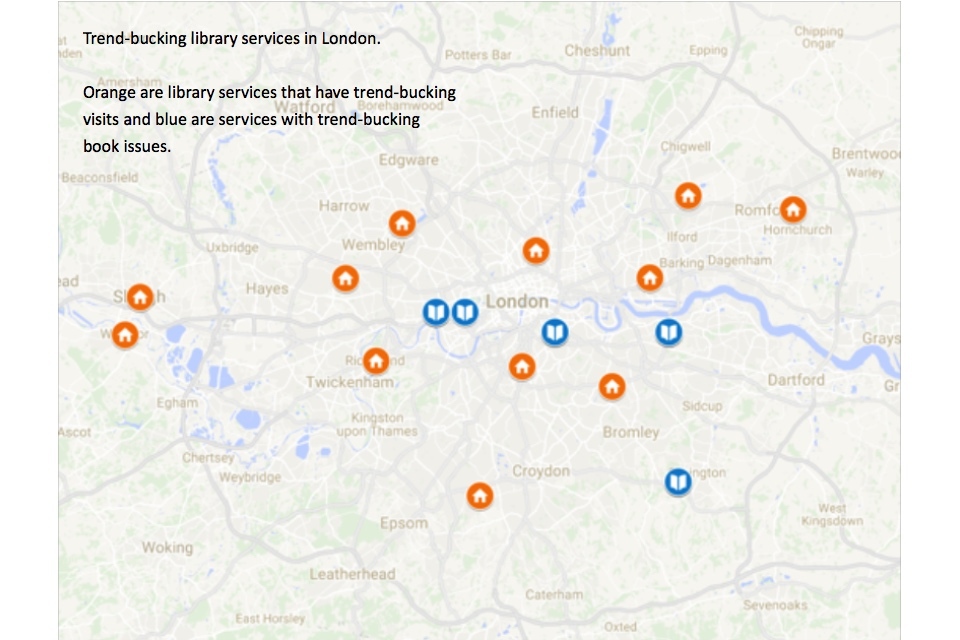The data analysis also illuminates a path forward for public libraries in England. “Trend-bucking” library services, which have been identified as high-performing, are analysed to provide insight into the variables that most impact their success. In addition, selected library services are featured in case studies which explore some of the strategies that improving and successful branches have used to engage with their community. In follow-up to this report, the Taskforce should continue to interview and learn from the most successful libraries identified by this report in order to further good practices across the sector. The Libraries Taskforce blog provides a rich repository of good practice work thus far.