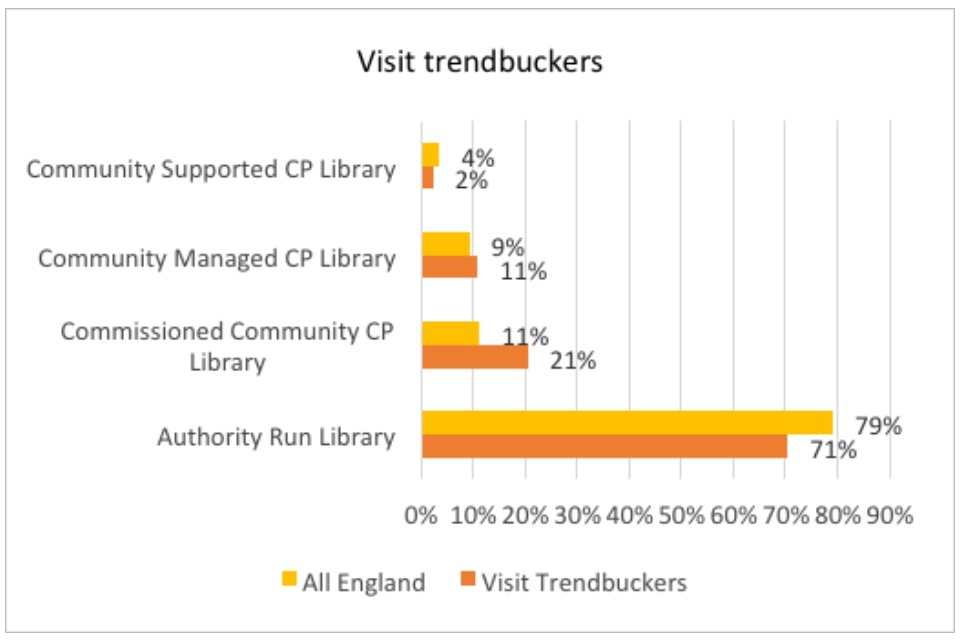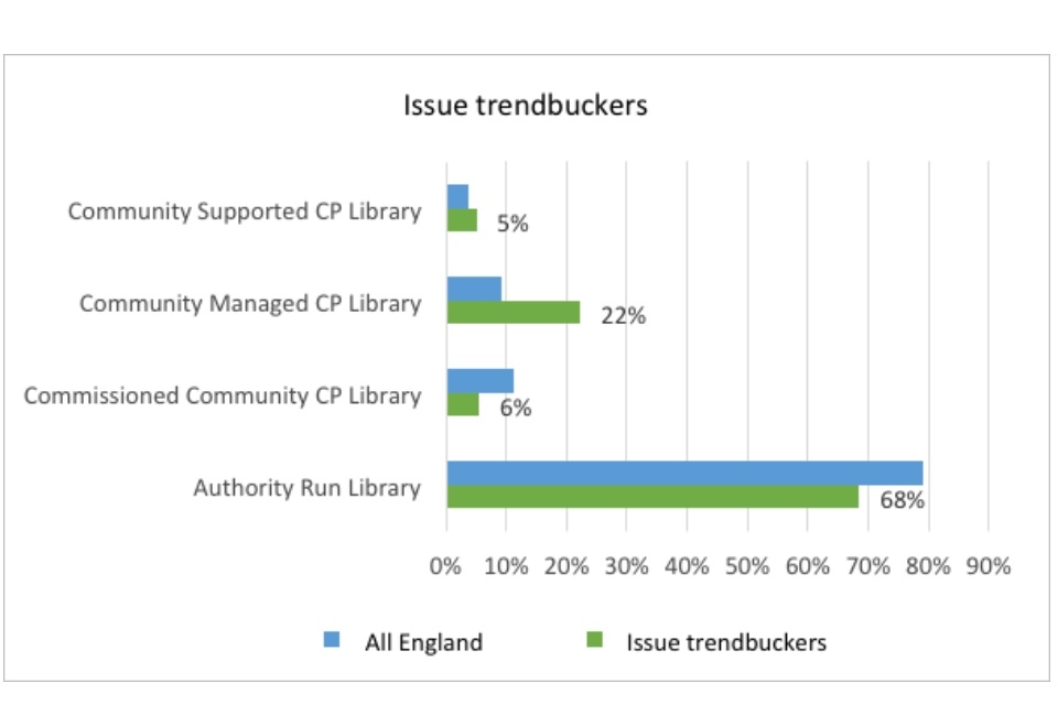 Over one quarter of all library services are trendbuckers, meaning they have shown an increase in use (visits or issues) over the past year and/or the past decade.