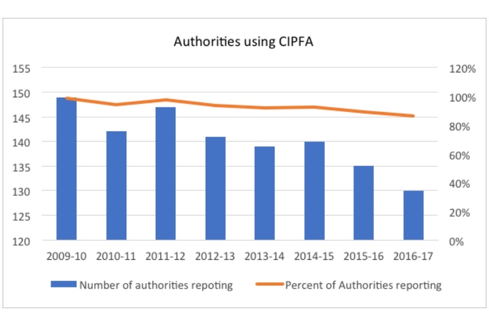 Graph showing the number of authorities using CIPFA