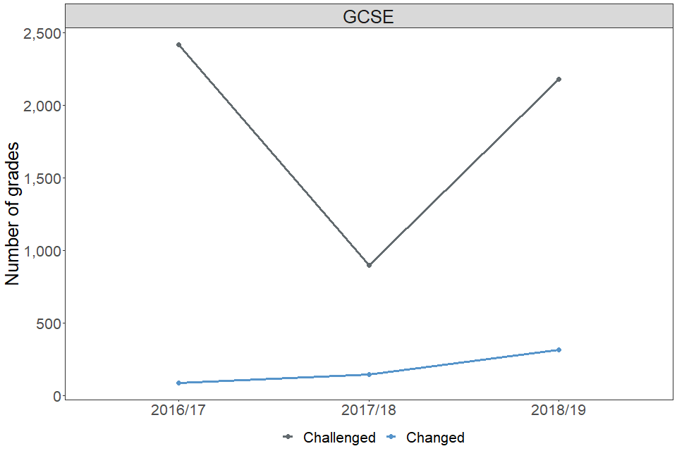 | Year | Grades challenged (GCSE) | Grades changed (GCSE) |