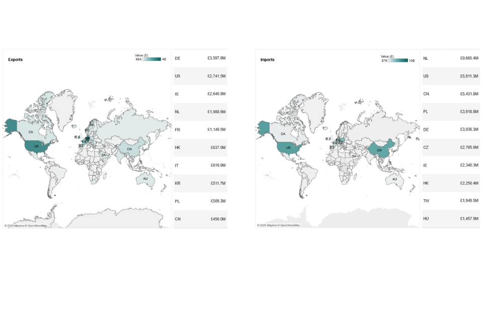 5. The number of companies engaged in international trade and the key locations and value of that trade.
