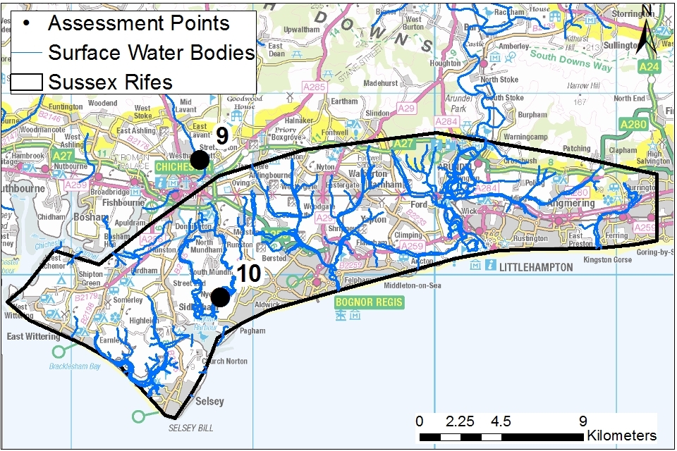 The Arun and Western Streams catchment covers an area of 1,484km2 mostly in West Sussex. Urban development is concentrated on the coastal plain (see Map 1). It includes the towns of:
