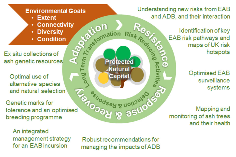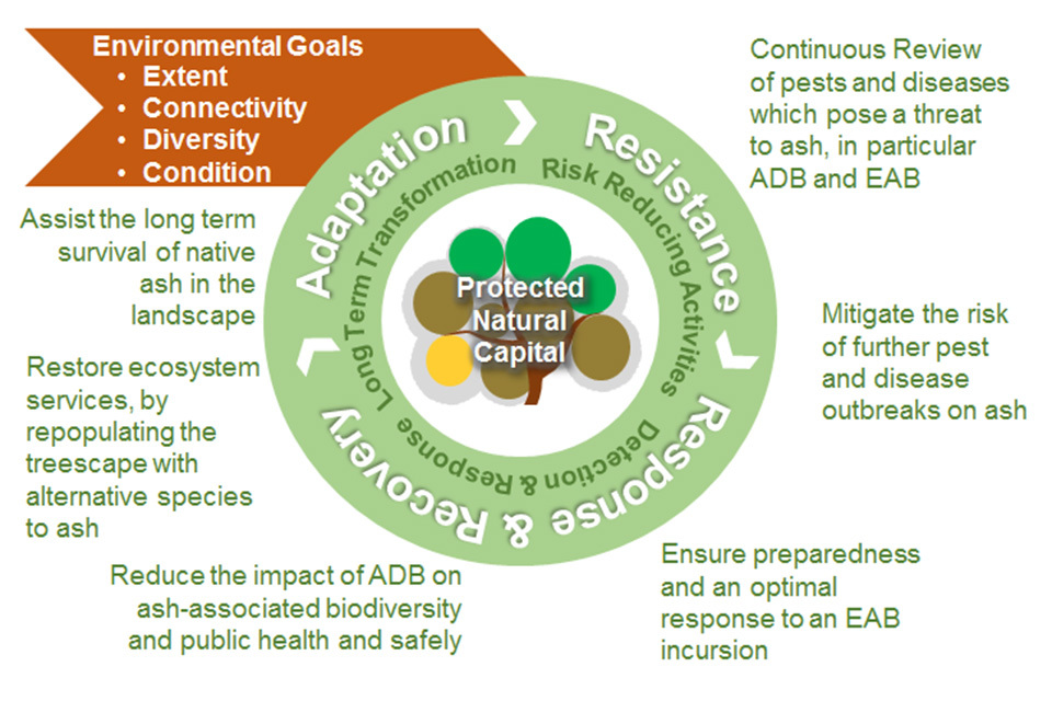 This strategy presents an opportunity to learn from our experience of ADB and to ensure that our ash trees are resilient to additional future threats. In particular, Emerald Ash Borer (EAB), which has devastated ash trees across North America, presents a looming threat and will be a key focus for future studies.