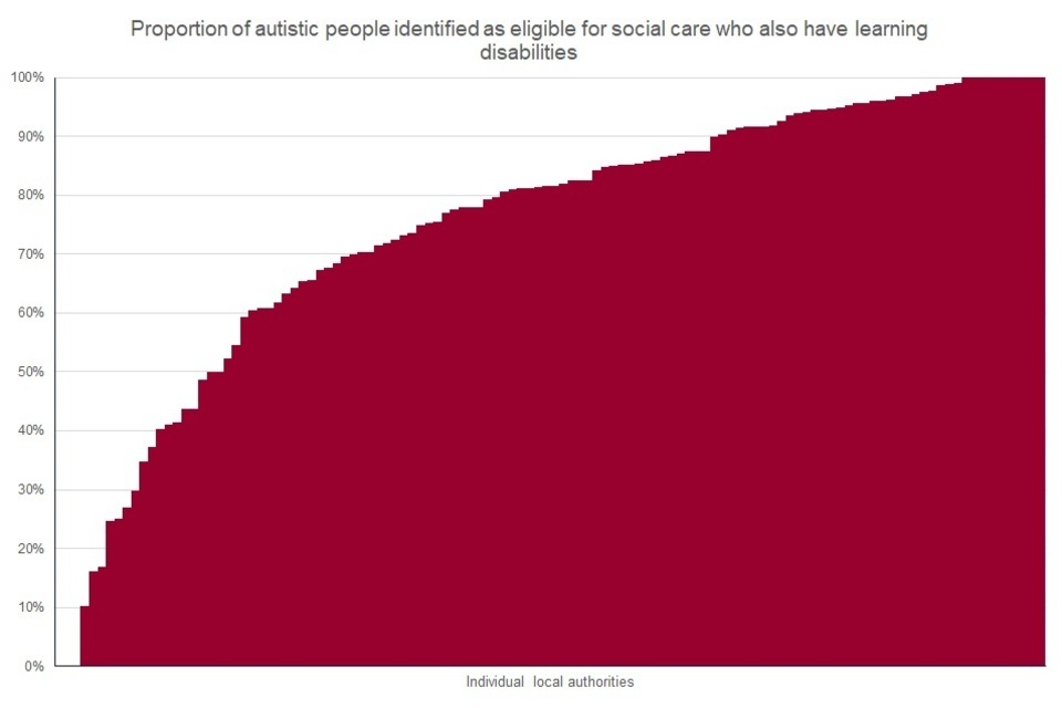 Chart 2. Proportion of autistic people identified as eligible for social care who also have learning disabilities