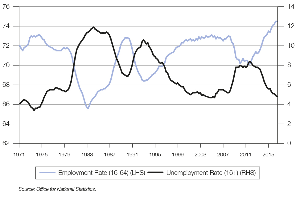 The UK economy showed considerable momentum in the run up to the EU referendum, and has shown significant resilience since. The UK is forecast to be the fastest growing country in the G7 in 2016 and economic activity grew 2.3% in the year to Q3 2016. The employment rate is at a record high of 74.5%, and between 2009-10 and 2015-16 the deficit was reduced by almost two-thirds from 10.1% to 4.0% of GDP.