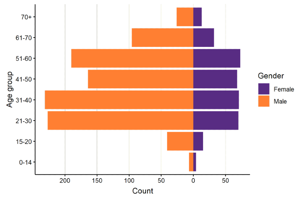 Figure 3. Age-sex distribution of exposure episodes captured in HPZone from 1 October 2022 to 15 December 2022