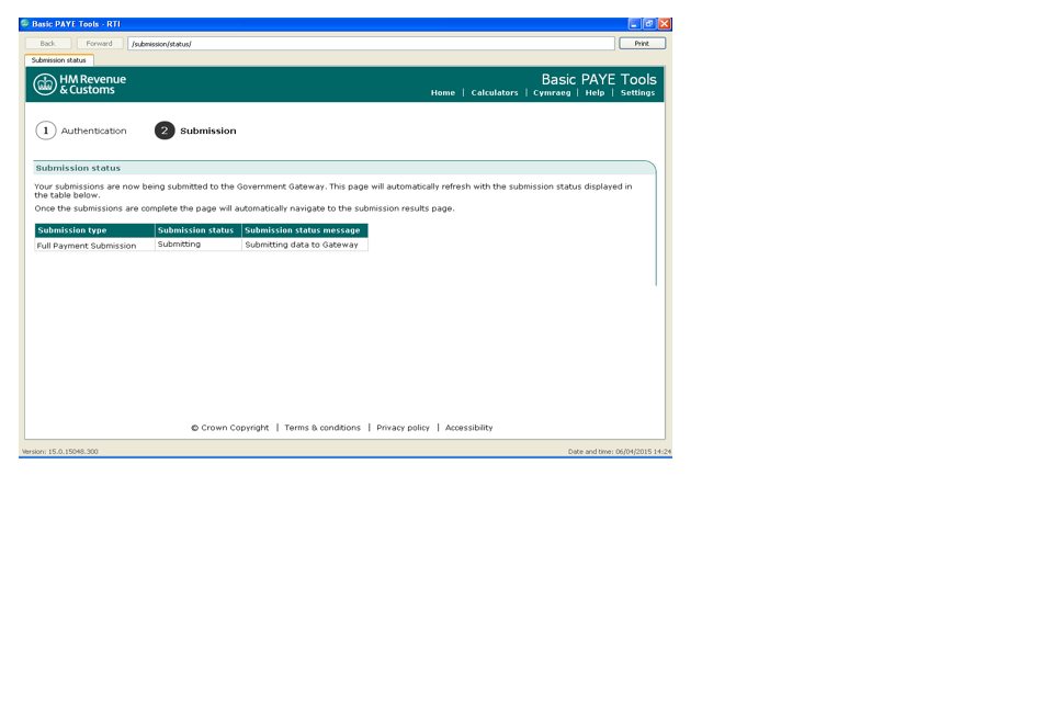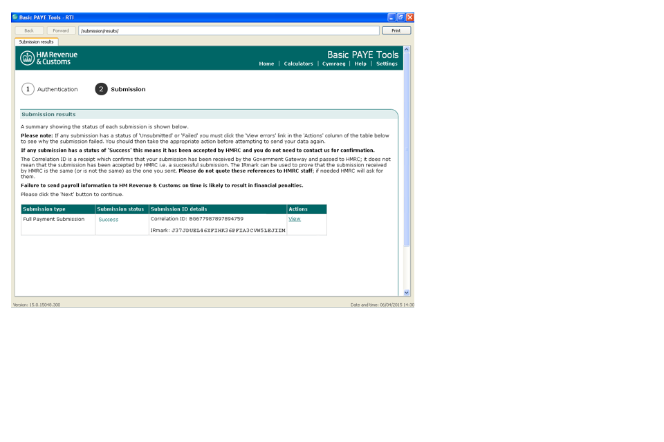 Finally you will receive a screen showing your submission results including a unique reference number for your submission.