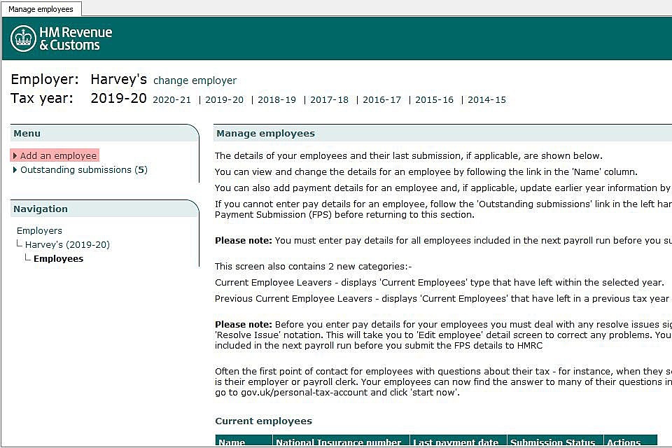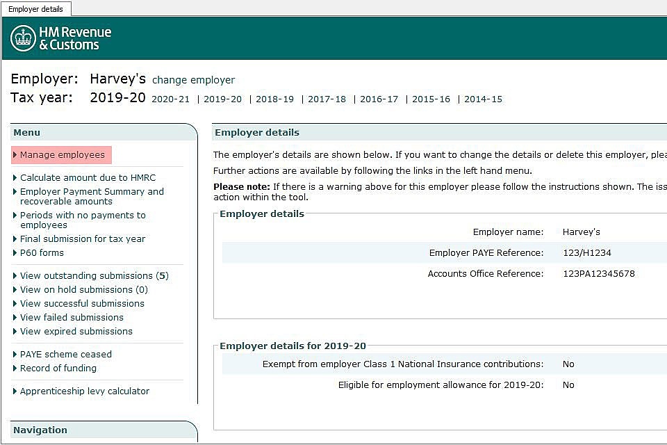 You’ll also need the payroll records for this employee. Select the ‘Manage employees’ link from the Menu.