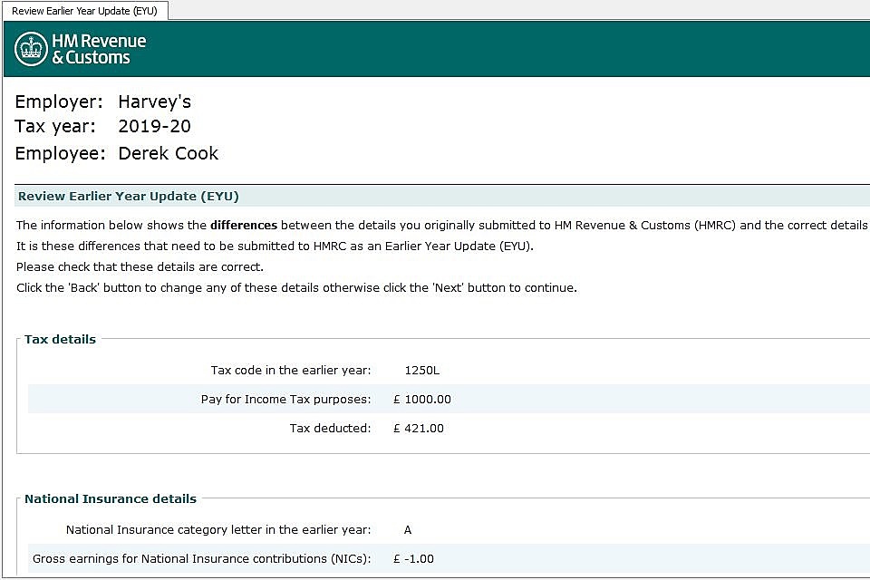 You’ll now see the screen ‘Earlier Year Update - Correction details’.