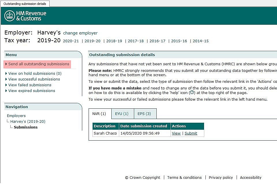 When you’ve finished creating the EYU you should send the submission to HMRC.